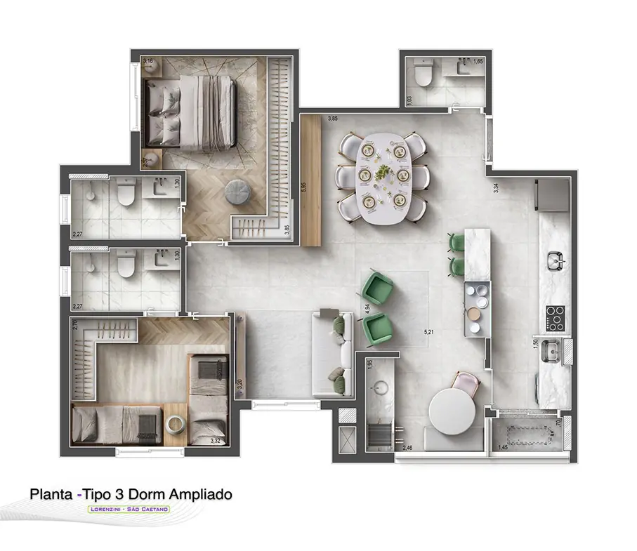 * Varanda técnica separada, garantindo organização e estética.